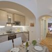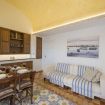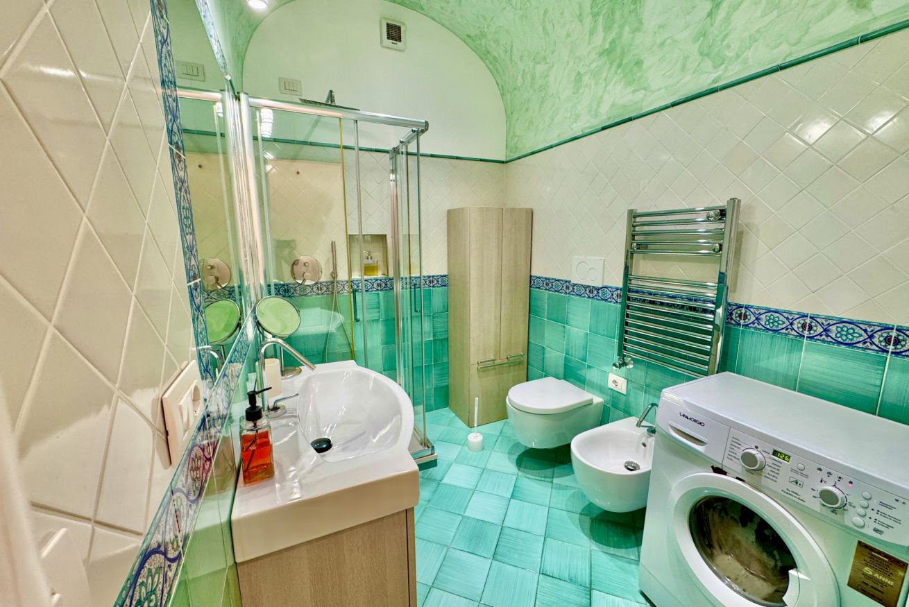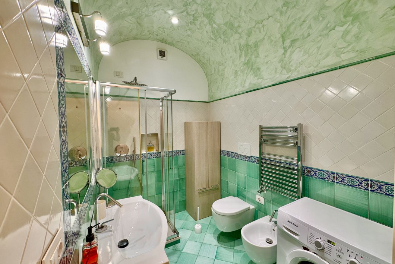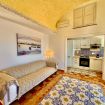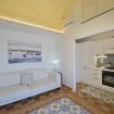 Il Primo Piano ha un accesso separato e si accede direttamente nel soggiorno che contiene un angolo cottura attrezzato con forno elettrico, lavastoviglie, microonde, fornello a gas 4 fuochi, posate, pentole e stoviglie, una caffettiera a capsule Lavazza. Il soggiorno dispone di comodo divano e Smart-TV collegata a Internet. Il corridoio si collega alle 2 camere da letto. La camera da letto più grande ha un letto matrimoniale (su richiesta possiamo separarlo e convertirlo in due letti singoli). Questa camera matrimoniale ha un bagno piastrellato blu en-suite con box doccia, lavabo e servizi igienici. La camera matrimoniale principale ha un letto matrimoniale, con vicino un altro bagno completo piastrellato in verde e dotato di box doccia, lavabo, bidet, wc e lavatrice. L'alloggio dispone di un balcone con vista mare con accesso dalle camere da letto. Un totale di quattro persone possono dormire comodamente al primo piano di Volte D'Oro / Golden Vaults; tuttavia se ad una quinta persona sta bene dormire sui cuscini del divano, possiamo sistemarvi un altro ospite, ma ad un costo aggiuntivo.